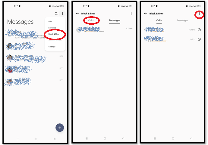 You may also unblock someone or add them back to the Allowlist by tapping on the three dots in the same place as you blocked them. If you choose Block & Filter, you will be able to pick between Messages and Calls.